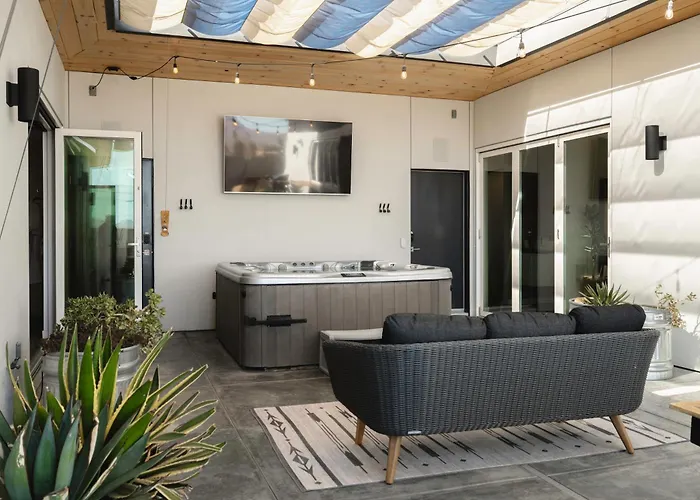 Nestled in the serene landscapes of Yucca Valley, the charming cabins beckon travelers seeking both adventure and relaxation with friends. Picture a sun-soaked retreat, where laughter fills the air as you and your crew gather by the glistening pool, sipping cocktails and sharing stories under a brilliant blue sky. The comfortable interiors create a welcoming atmosphere, perfect for unwinding after a day of exploring the stunning desert terrain. As the sun sets, the pool area transforms into a magical gathering spot, ideal for evening chats under a canopy of stars, solidifying those unforgettable memories shared with your closest companions. In this tranquil haven, every corner invites connection, making it the perfect escape for friendship.